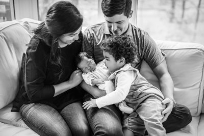 Lifestyle sessions capture real moments in your baby's life; with a more candid, personal approach, this documentary type session will include baby's interaction with the family & siblings and is a wonderful way to document the early days with your new little one. There is little to no posing during lifestyle sessions - instead, we utilize different rooms and elements in your home to document the baby and family together; parents, siblings, and (sometimes) pets play a big role in these types of sessions.